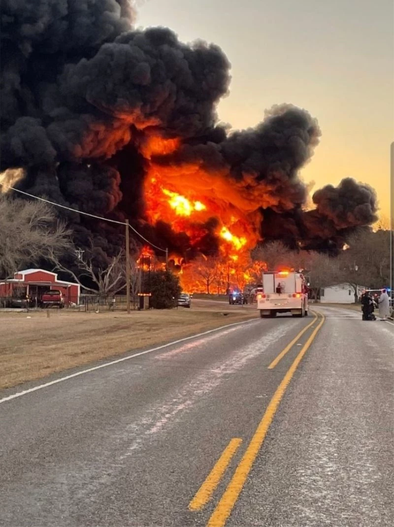 ABD’nin Texas eyaletinde petrol taşıyan tren ile tırın çarpışması sonucu yangın çıktı.
