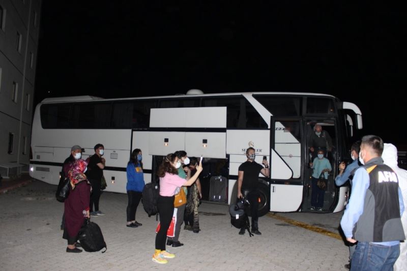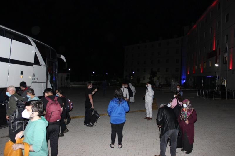Koruyucu tulum giydikleri, maske ve eldiven taktıkları görülen Türk vatandaşları, 14 günlük karantina dönemini geçirecekleri Isparta ve Burdur’a hareket etti.