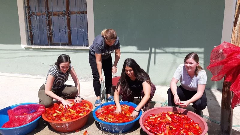 Adana’nın Tufanbeyli ilçesine gelen 3 ABD’li genç kızın inek sağıp, balık tutup, kilim dokuyarak salça yapması yöre sakinlerini şaşırttı.