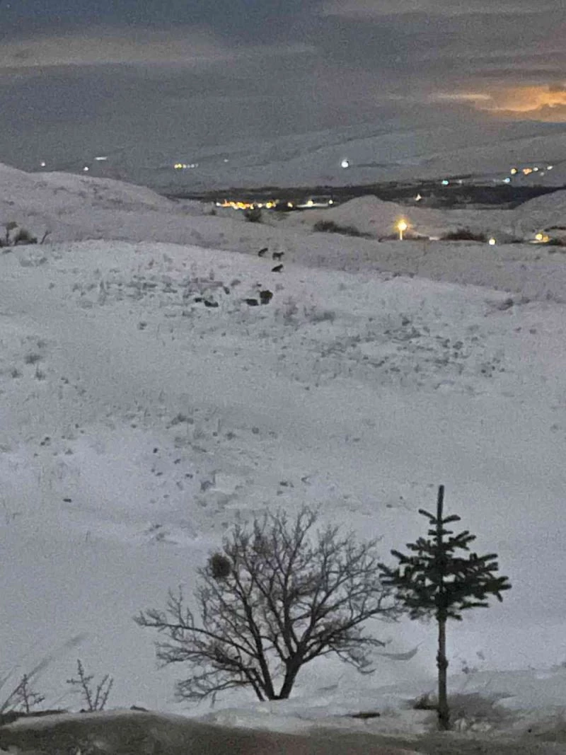 İlçeye bağlı İğdeli Mahallesi’nde meydana gelen olayda, aç kalan kurtlar mahallenin yakınına kadar indi. Vatandaşlar tarafından görüntülenen kurtlar, bir süre etrafı gözlerken daha sonra gözden kayboldu. O anlar saniye saniye görüntülenirken, vatandaşlar da yetkililerden kurtlara yem verilmesini istedi.