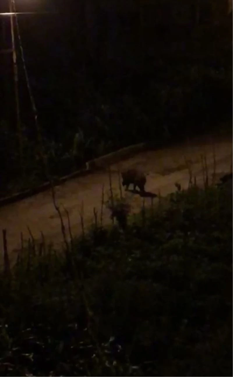 Trabzon’un Araklı ilçesinde aç kalan yaban domuzları dün akşam ilçe merkezine indi.