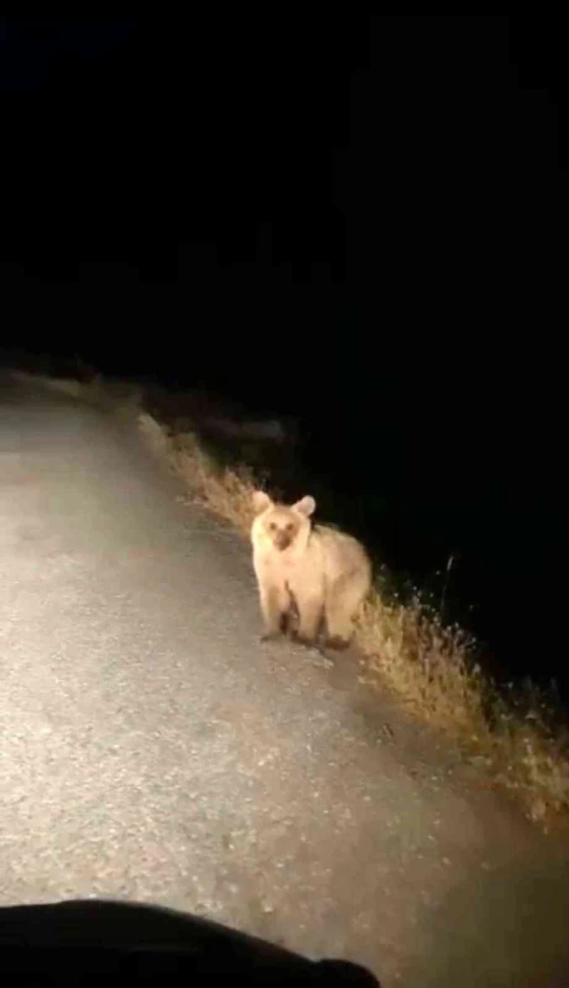 Yoldan geçen bir vatandaş tarafından çekilen görüntülerde, yavru ayının yiyecek bulmak için köy yoluna indiği görüldü. Vatandaşları gören ayı yavrusu, bir süre sonra bölgeden uzaklaştı.