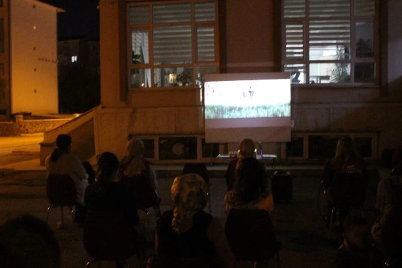Saygı Duruşu ve İstiklal Marşı’nın okunmasının ardından görevliler ve mahalle sakinleri ile gönüllü gençler açık alanda zafer coşkusu ile ilgili filmler izledi.