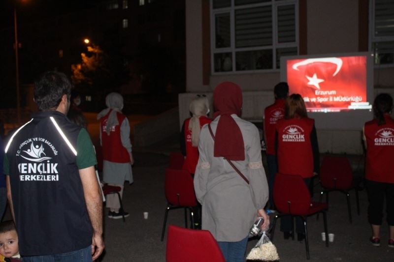Gençlik Liderleri ve Gönüllü gençler, Palandöken Gençlik Merkezi Müdürü Memet Gözütok öncülüğünde açık alanda oluşturduğu sinema ile gençlere ve mahalle sakinlerine zafer filmleri izletti.