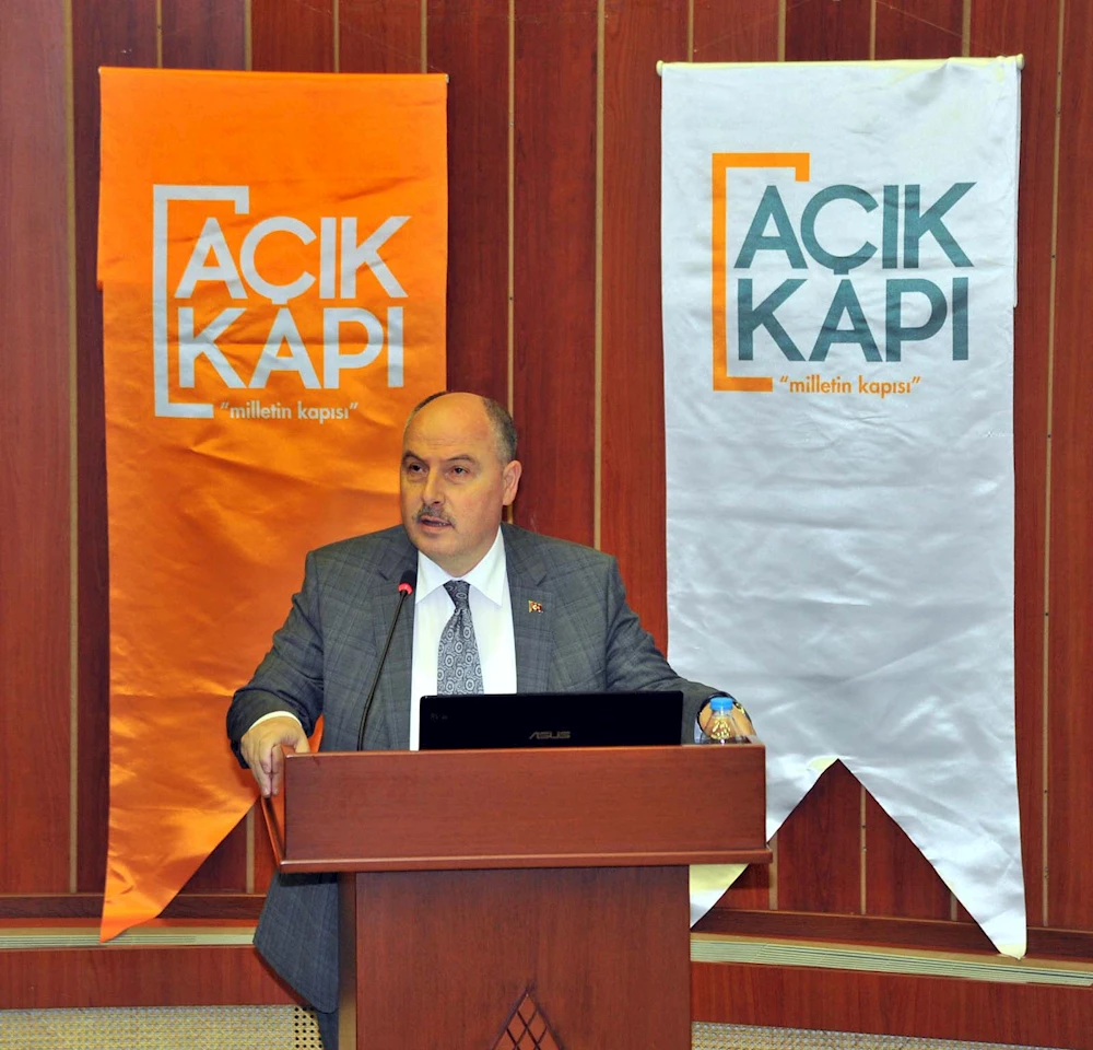 İçişleri Bakanlığı Strateji Geliştirme Başkanlığı tarafından 81 ilde hayata geçirilmek üzere hazırlanan `Açık Kapı Projesi` bilgilendirme toplantısı Osmaniye`de, Vali Ömer Faruk Coşkun başkanlığında yapıldı. Valilik Ahmet Cevdet Paşa Toplantı Salonunda düzenlenen toplantıya Vali Coşkun?un yanı sıra Belediye Başkanı Kadir Kara, kamu kurum ve kuruluşları il müdürleri, kurum yetkilisi şube müdürleri ve müdür yardımcıları katıldı. Toplantının başında konuşan Vali Ömer Faruk Coşkun, projenin; devletle vatandaş arasındaki karşılıklı iletişim ve güveni artırmak, vatandaş talep ve beklentilerinin toplanmasını ve oluşturulacak politikalara esas olmak üzere anlamlandırılmasını sağlamak amacıyla oluşturulduğunu söyledi. Vali Coşkun, "Bu proje ile vatandaş odaklı bir yaklaşım benimseyerek taleplere hızlı ve doğru çözümler üretilmesi, güler yüzlü çalışanlarıyla tüm vatandaşlarla birebir ve sıcak bir iletişim kurulması, İçişleri Bakanlığına bağlı kurumlar, yerel yönetimler ve diğer ilgili kurum ve kuruluşlarla işbirliği halinde mümkün olan en fazla konuda hizmet verilmesini sağlamak, hizmetlerde vatandaş memnuniyetinin artırılması, toplumda kamu hizmetlerini sunanlarla vatandaşlar arasındaki karşılıklı iletişim ve güvenin artırılması, vatandaş talep ve beklentilerinin toplanmasını ve oluşturulacak politikalara esas olmak üzere anlamlandırılması, kronikleşmiş sorunlara çözümler üretilmesi amaçlanmaktadır. Vatandaşlarımız, Valiliklerde bulunan Açık Kapı Bürolarına giderek veya internet üzerinden online olarak ya da yakında hizmete geçecek olan mobil uygulama yoluyla başvuru yapabileceklerdir. Başvuru yapıldığı anda başvuru sahibine sms yoluyla bir başvuru numarası gönderilecek, başvuru elektronik sisteme kaydedilecek sonrasında başvuru sahibi başvuru durumunu online olarak takip edebilecektir. Oluşturulan başvurular konusuna göre ayrıştırılarak ilgili kuruma yönlendirilip 7 gün içinde olumlu ya da olumsuz cevaplanması sağlanacaktır." diye konuştu. Vali Coşkun konuşmasının son bölümünde projenin sağlıklı bir şekilde yürütülmesinde kamu kurum müdürlerinin katkısının önemli olduğunu vurgulayarak, kurumlarda yetkili şube müdürlerinin kurumlara yönlendirilen vatandaş taleplerini takip edeceklerini ve 7 gün içerisinde başvuruların cevaplanacağını kaydetti. Vali Coşkun?un konuşmasının ardından Açık Kapı Koordinatörü İl Planlama Uzmanı Bayram İnce tarafından ?Açık Kapı Projesi? tanıtım sunumu ve Açık Kapı Personeli Duygu Topalhan tarafından ise Açık Kapı sisteminin kullanımı ile ilgili iş ve işlemlerin anlatıldığı sunum yapıldı. Toplantının ardından Vali Ömer Faruk Coşkun ve protokol mensupları, Valilik Binası giriş katında oluşturulan Açık Kapı bürosunu ziyaret ettiler.