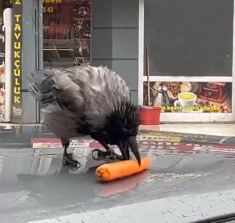 Çarşamba ilçesinde şehir merkezinde son günlerde görülen kargalar, doyabilecekleri noktalarda insanlardan yiyecek bekliyor. Market, manav, gıda ürünlerinin satışının yapıldığı konumlara gelen kargalar, yiyecek arayışına giriyorlar. İlçe merkezinde park halindeki bir otomobilin tavanında bekleyen karga, marketin önünde gözüne kestirdiği pirinç torbalarına yöneldi. Torbadan pirinci almakta başarılı olamayan kargaya, çevredeki vatandaşlar sebze verdi. Kendisine verilen havuç ile bir süre mücadele eden karga, uzun süre yemek arayışını sürdürdü. Bir başka adreste ise karga yemek için bir tatlıcı dükkanının önünde bekledi. İnsanlara karşı yakın duran ve uysal tavırlarıyla dikkat çeken kargaların bu davranışları dikkat çekiyor.