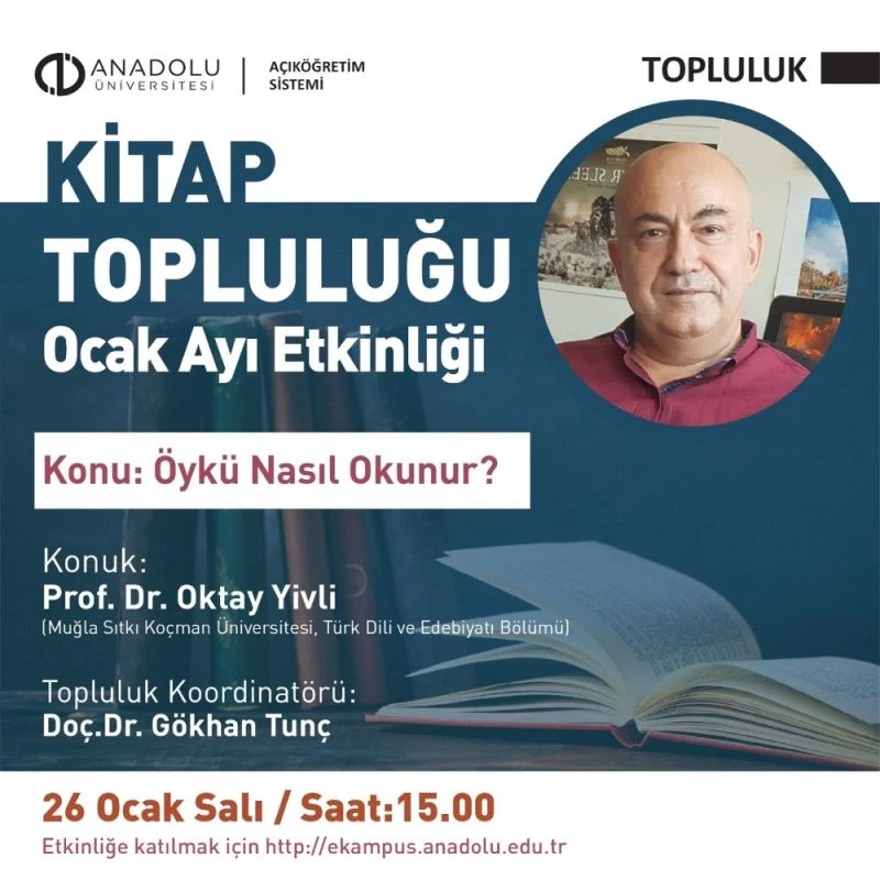Anadolu Üniversitesi Açıköğretim Sistemi bünyesinde faaliyet gösteren çevrim içi öğrenci topluluklarından Kitap Topluluğu, 2021 Ocak ayı etkinliği için Muğla Sıtkı Koçman Üniversitesi, Türk Dili ve Edebiyatı Bölümü Öğretim Üyesi Prof. Dr. Oktay Yivli ile bir görüşme gerçekleştirdi.