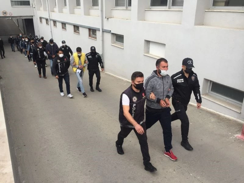 Emniyetteki işlemlerinin ardından adliyeye sevk edilen şüphelilerden aralarında Soner T. ile Emin O.’nun da bulunduğu 12 kişi çıkarıldığı mahkemece tutuklandı, 2 şüpheli adli kontrol şartı, 2 kişi de savcılık talimatıyla tutuksuz yargılanmak serbest bırakıldı.