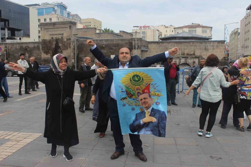 Cumhurbaşkanı Recep Tayyip Erdoğan’ın Cumhurbaşkanlığı ikinci tur seçimlerinde yeniden Cumhurbaşkanı seçilmesi Kayseri’de büyük bir mutlulukla karşılandı. Sonuçlarının belli olmasının ardından kentte binlerce vatandaş kutlama yaptı. Kayseri’de inşaat işiyle uğraşan Mevlüt Keleş de Cumhurbaşkanı Recep Tayyip Erdoğan’ı ikinci tur seçimlerinden galibiyetle ayrılması halinde koyun keseceğini adadı. Cumhuriyet Meydan’ında adağını gerçekleştiren Keleş, yakınlarıyla birlikte davulla zurnayla halay çekti. "Yolumuz Recep Tayyip Erdoğan’ın yoludur" diyen Keleş, “Dünya liderimizin kazanması için Kayserili vatandaşlarımız ile beraber elimizden geleni yaptık ve kazandırdık. Adak adamıştım, onu da yerine getirdim. Burada vatandaşların bana verdiği destek için de mutluluk duyuyorum. Yolumuz Tayyip Erdoğan’ın yoludur. Milletvekillerimiz ve Recep Tayyip Erdoğan için elimizden geleni yaptık, yapacağız da. Seçim sonrası sabaha kadar uyumadık. Sabaha kadar buralarda, meydanlarda ve sokaklardaydık. Çok şükür kazandık. Kazanana kadar elimizden geleni yaptık. Allah cumhurbaşkanımızın yolunu, bahtını açık eylesin. Kazadan, beladan gözden korusun. Biz Kayseri’de AK Parti ve MHP’den seçilen vekillerimiz için çalıştık. Onların da yüzümüzü yere düşürmemelerini istiyoruz” ifadelerini kullandı.