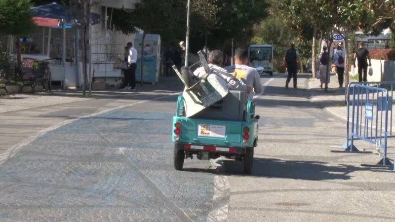 Celal Uzun, ”Beyaz eşya hizmeti vermekteyim. Daha önce at arabası ile bu hizmeti sağlıyorduk. Yaklaşık 5-6 hafta atları kaldırdılar. Şuan ben 4 araç ile bu hizmeti vermekteyim. Zaman zaman bunların arızalarıdır, şarjların yetmemesi gibi sorunlar oluyor. Tabii bunlar yeterli değil, şuan da kendi çapımızda bu yükü aldık. Bunları da emniyete tabii tutmak için dilekçemizi yazdık. Yazın dört tane yetmiyor. Kışın ise 2 tane ile ancak bu hizmeti sağlamaktayım. Normal bir tane motorlu ya da elektrikli tescilli bir araç verse bizim yükü, işimizi kaldırabilecek şekilde sunsa bize bence bu sorun çözülür” diye konuştu.