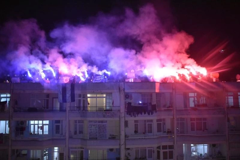 Sosyal medya üzerinden haberleşen mavi-lacivertli taraftarlar, evlerinin balkonlarında ve binalarının çatılarında şampiyonluk tezahüratları yaptı.