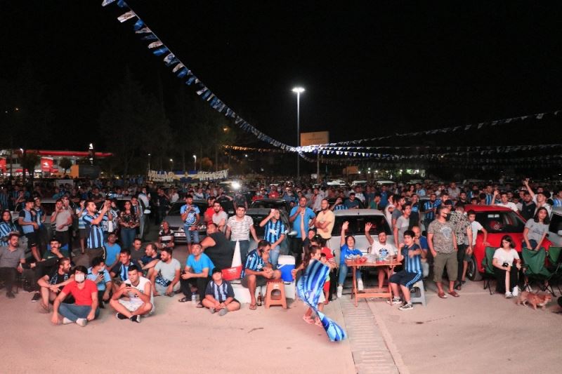 TFF 1. Lig ekiplerinden Adana Demirspor, Bursaspor ile oynadığı play-off yarı final ilk maçını, Adanalı vatandaşlar kentte kurulan dev ekranlarda araçlarında ve açık havada maçı izleme imkanı buldu.