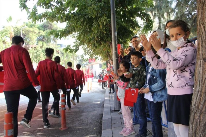 Cumhuriyet Meydanı'nda devam eden programda Su, Deniz Kuvvetleri Akdeniz Bölge ve Garnizon Komutanı Tuğamiral Fuat Gedik ve Büyükşehir Belediye Başkanı Vahap Seçer, tören aracı üzerinden katılımcıları selamladı.