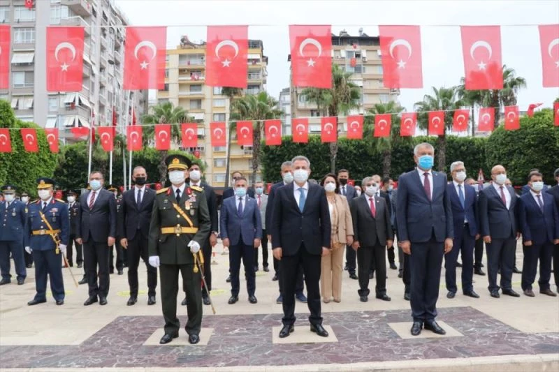 Mersin'de, Cumhuriyet Alanı'nda düzenlenen törende Vali Ali İhsan Su, Deniz Kuvvetleri Akdeniz Bölge ve Garnizon Komutanı Tuğamiral Fuat Gedik ve Büyükşehir Belediye Başkanı Vahap Seçer, Atatürk Anıtı'na çelenk sundu. Saygı duruşunda bulunulan program, katılımcıların İstiklal Marşı'nı okumasıyla sona erdi.