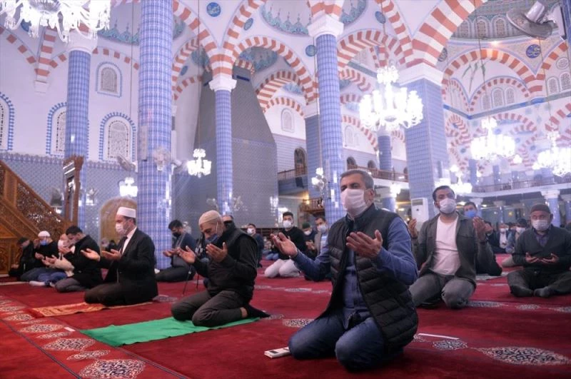 Camilere gelen vatandaşlar maske takıp, sosyal mesafe kuralına uyarak okunan Kuran-ı Kerim'i dinledi, namaz kıldı, dua etti.