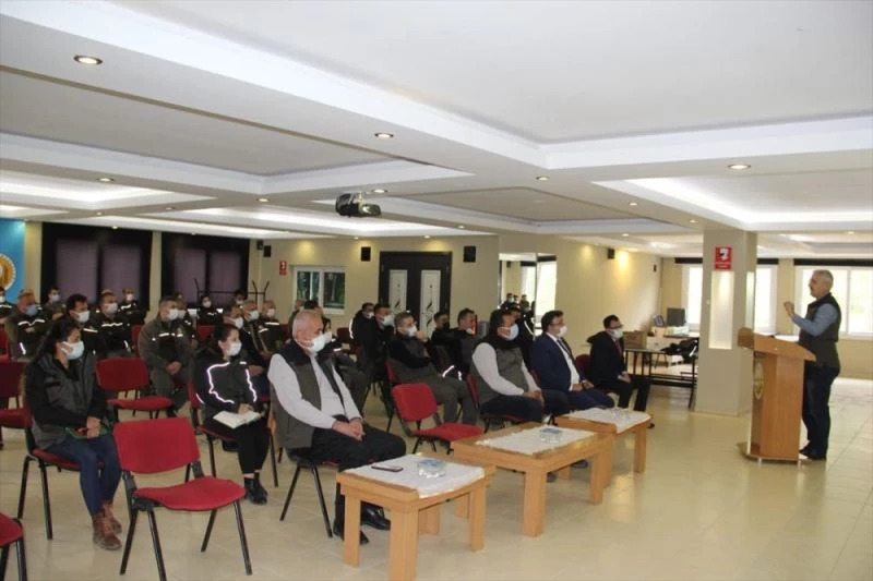 Eğitim kapsamında Şube Müdürü Onur Leylek, mühendis Bayram Canbolat ve avukat Volkan Eroğlu, katılımcılara, orman suçlarında arama-el koyma, suç zaptı tanzim edilmesi, damga ve nakliye tezkereleri, silah taşıma ve kullanma talimatları, orman koruma, otlatma ve genel OZM mücadele konularında bilgi aktardı.