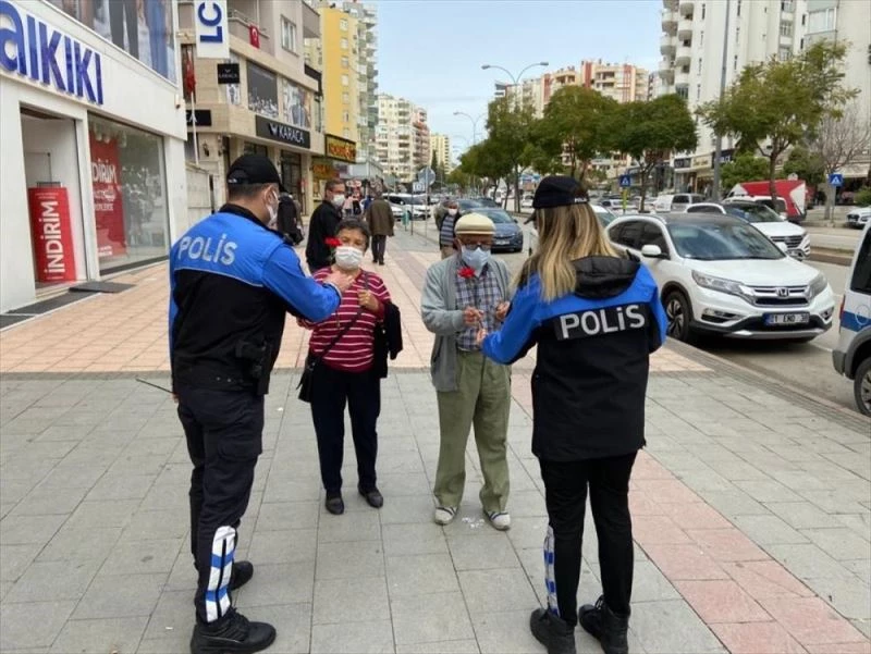 ADANA (AA) - Adana’da polisler, 18-24 Mart Yaşlılar Haftası dolayısıyla vatandaşlara karanfil dağıttı.