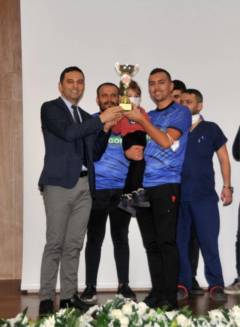 Turnuvada dereceye girenlere ödüllerini Başhekim Prof. Dr. Süleyman Çetinkünar verdi.