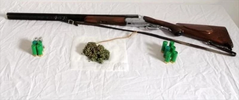 Adreste 100 gram esrar, ruhsatsız av tüfeği ile bu silaha ait 12 fişek ele geçirildi.