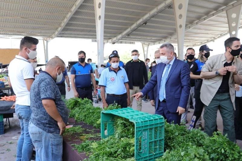 Pazara ateşi ölçülerek alınan Vali Elban, vatandaşları sosyal mesafe, maske ve hijyen kuralına uymaları yönünde uyardı. Polis ve zabıtalar tarafından da maskesi olmayan vatandaşlara maske dağıtıldı.
