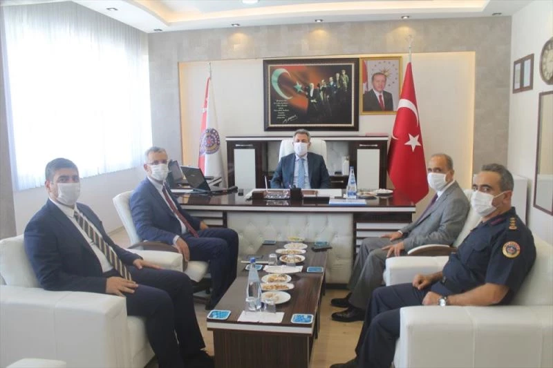 Vali Elban'i ilçeyi ziyaretinde Kaymakam Hasan Hüseyin Vural karsiladi.