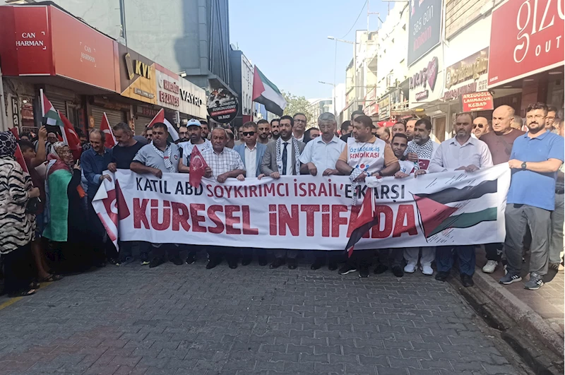 Kaptan Mehmet Paşa Camisi önünde toplanan grup ellerinde Filistin bayraklarıyla İsrail ve ABD aleyhine slogan atarak Nihal Atakaş Camisi'ne kadar yürüdü.
