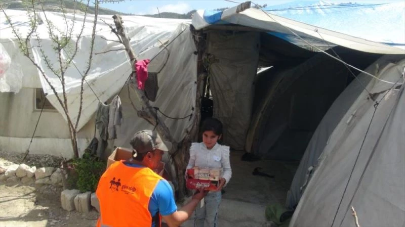 HATAY - Adana Dosteller Yardımlaşma ve Dayanışma Derneği ile Eskişehir Gün Işığı Derneği, Suriye'nin İdlib bölgesine gıda ve bayramlık kıyafet yardımı yaptı.