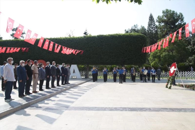 Adana Vali Yardımcısı Muzaffer Şahiner ve Adana Esnaf ve Sanatkarlar Odaları Birliği (Adana ESOB) Başkanı Niyazi Göger, Atatürk Anıtı'na çelenk sundu.