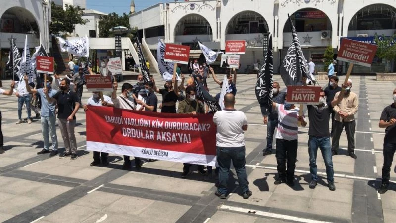 Adana'da vatandaşlar, cuma namazı sonra Sabancı Merkez Camisi'nin bahçesinde bir araya geldi. Filistin bayrağı açan grup, İsrail aleyhine sloganlar attı.