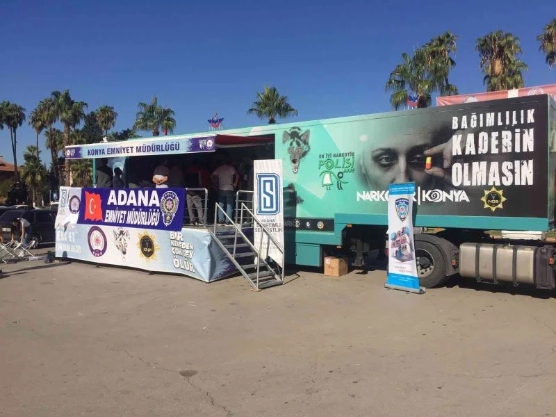 Ayrıca Konya Emniyet Müdürlüğünce vatandaşları uyuşturucu maddeyle mücadele konusunda bilinçlendirmek için hazırlanan ve ülkeyi dolaşan narkotik eğitim tırı, Adana’da 984 kişiye eğitim verdi. Tırın konuşlandığı bölgelerde 3 bin bilgilendirici broşür dağıtıldığı bildirildi.