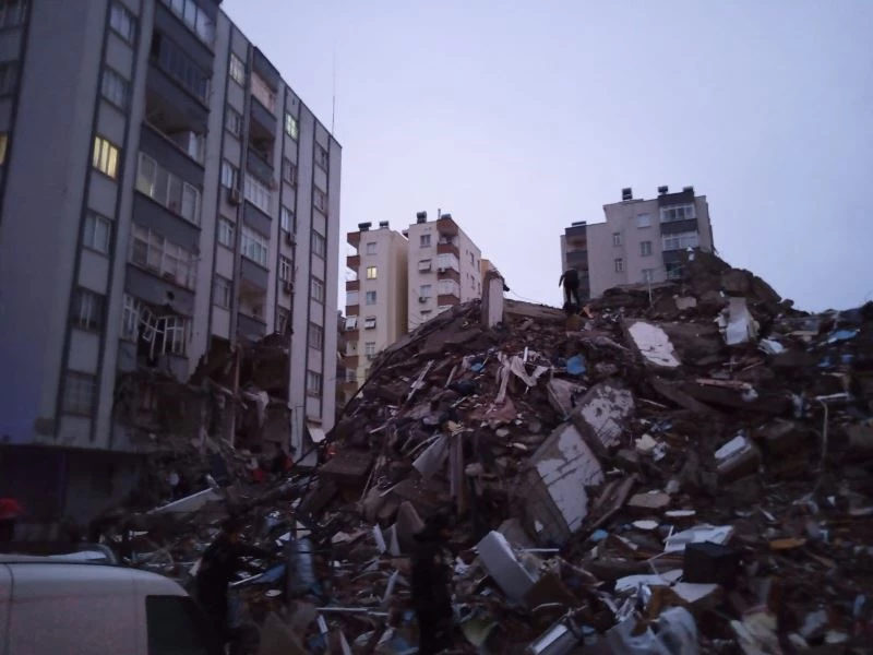 Sabaha karşı meydana gelen depremde Çukurova ilçesine bağlı Güzelyalı Mahallesinde 14 katlı bina tamamen çöktü. Binanın çökmesiyle birlikte AFAD ve belediye ekipleri olay yerine gelerek kurtarma çalışması başlattı. Yapılan çalışmada enkazdan bir yaşlı kadın sağ olarak çıkartıldı. Hala arama-kurtarma çalışması devam ediyor. Binada yakınları olan vatandaşlarda alana gelerek gözyaşlarına boğuldu.
