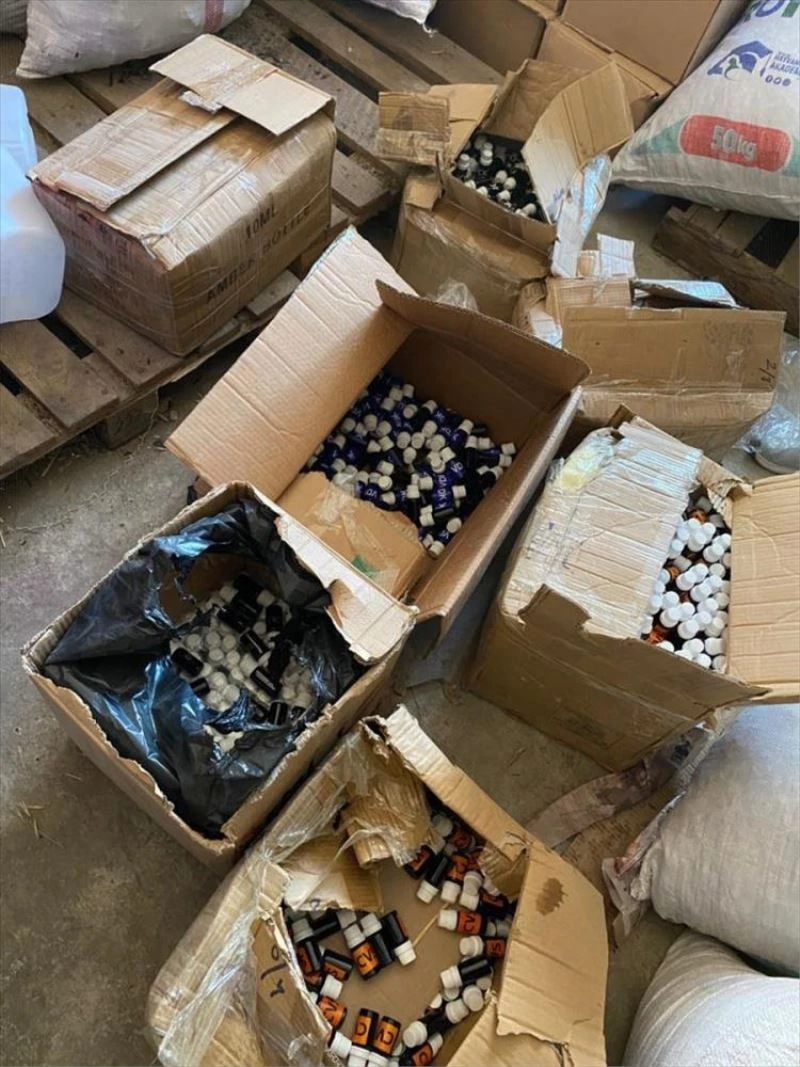Adreslerde 1560 litre etil alkol, 45 şişe sahte içki, sahte içki üretiminde kullanılan 213 litre gliserin ile 3 bin 358 alkol kiti ele geçirildi.