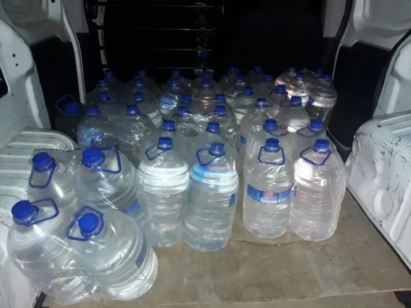 Ekipler, 200 litre sahte içki bulunan kamyonetteki S.H. ve H.H'yi gözaltina aldi.