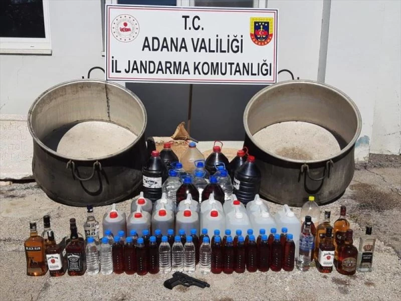 İl Jandarma Komutanlığı ekipleri, sahte içki imalatı yapıldığı belirlenen merkez Yüreğir ilçesi Seyhan Mahallesi'ndeki bir eve operasyon düzenledi.