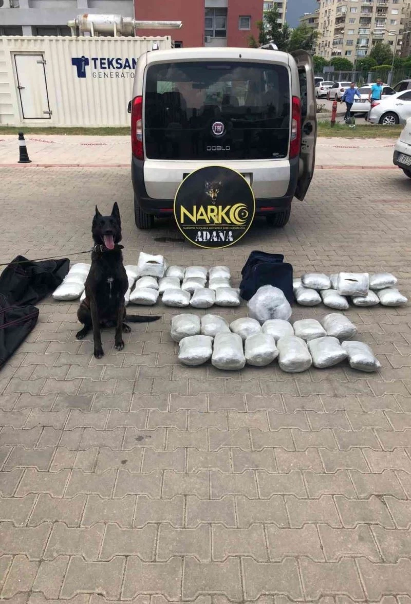 Adana’da takip edilen hafif ticari araçta hassas burunlu köpekle yapılan aramada 37 kilo esrar ele geçirildi. Gözaltına alınan 1 kişi tutuklandı.