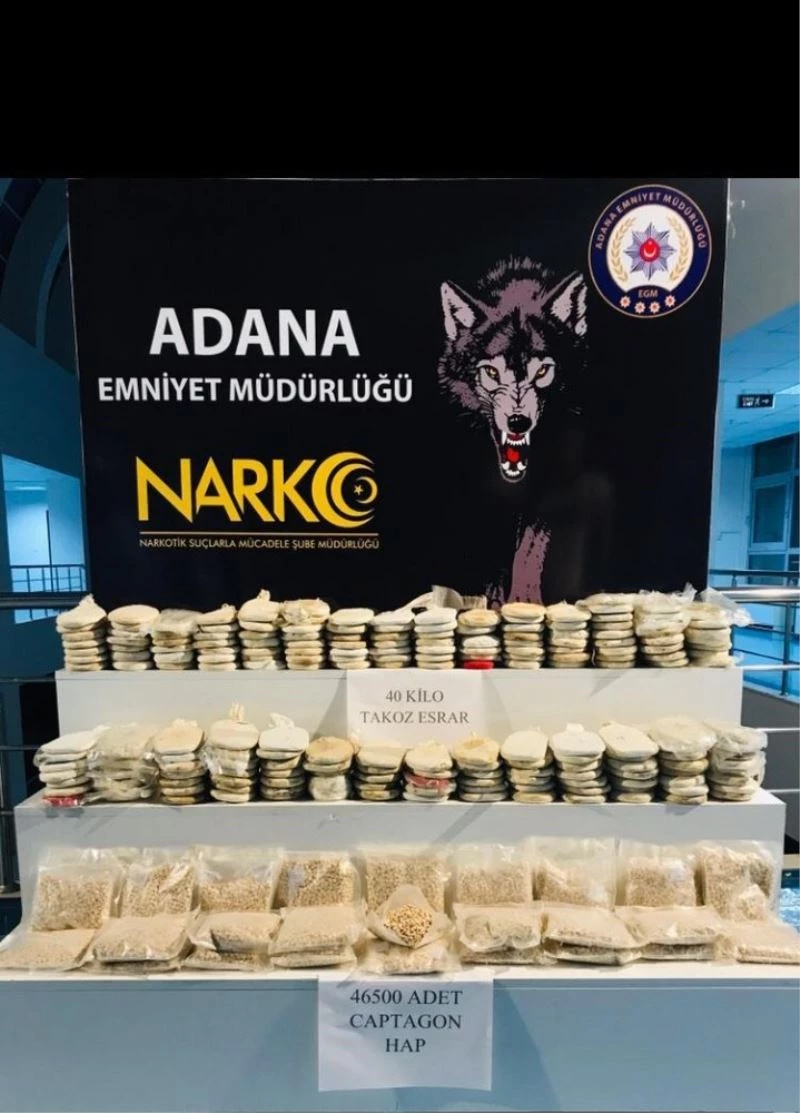 Adana’da bir kamyonette 40 kilo takoz esrar, 46 bin 500 uyuşturucu hap ele geçirildi.