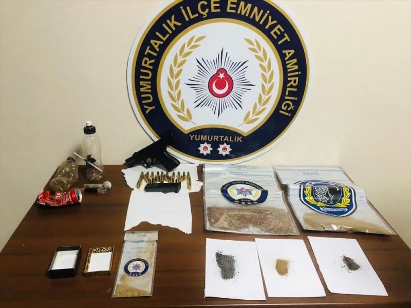 Üst aramasinda 1 tabanca, ikametinde ise 235 gram esrar ele geçirildi.