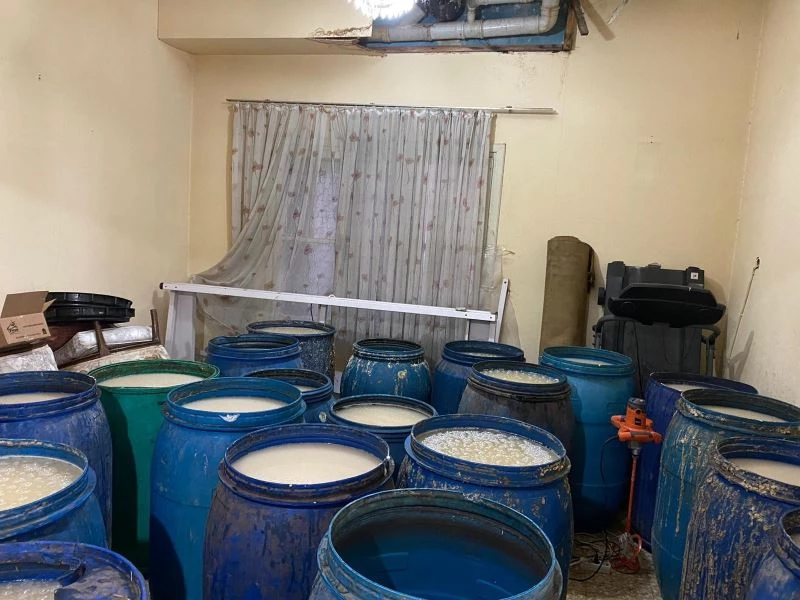 Adana’da polis 8 bin 200 litre ve 135 şişe sahte içki ele geçirdi.