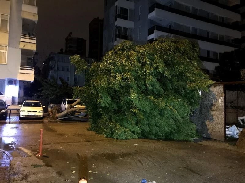 ADANA - Adana'da kaldırımda bulunan bir ağaç yola devrildi.