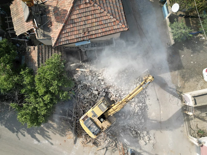 Bu kapsamda ekiplerin çevresinde önlem aldığı Tufanpaşa ve Hamam mahallelerindeki ağır hasarlı 3 bina iş makineleriyle kontrollü yıkıldı.