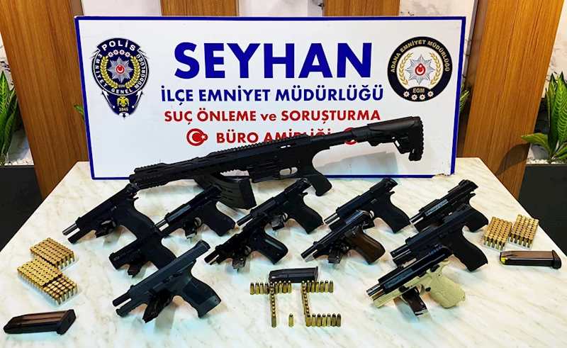 Adreste, ruhsatsız 10 tabanca ve 1 tüfek, kurusıkı tabanca, 15 şarjör, 387 mermi, 66 uyuşturucu hap ile 7,86 gram esrar ele geçirildi.