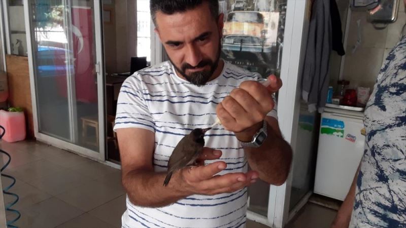 Toroslar Mahallesi'nde oto yikama isletmecisi Nizamettin Çiçekdemir, 3 ay önce is yerinin yakininda yeni dogmus Arap bülbülünü bitkin halde buldu.
