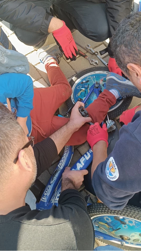 ADANA - Adana'da ayağı bisikletine sıkışan çocuğu itfaiye kurtardı.