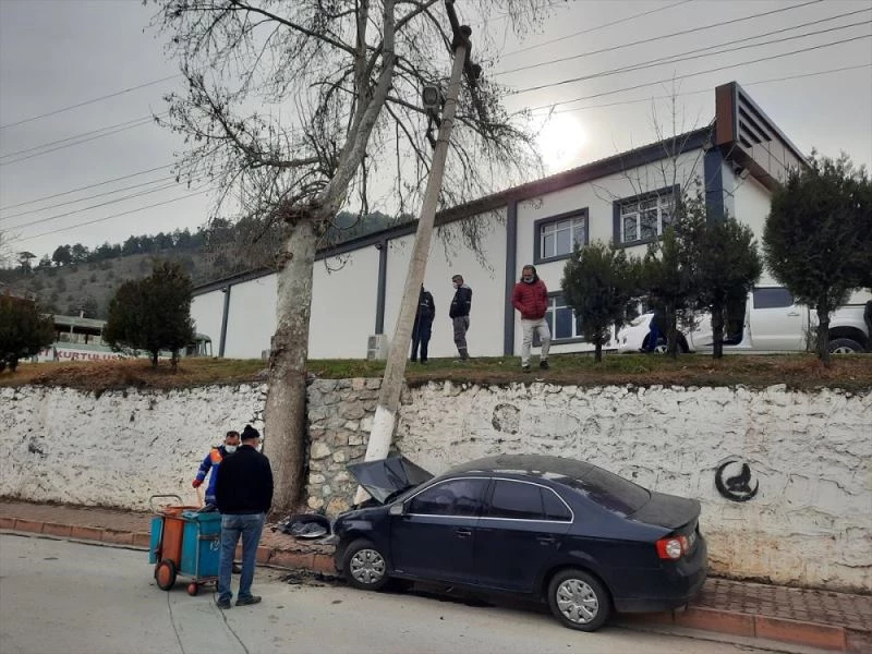 Alınan bilgiye göre, Abdurrahman I. idaresindeki 06 DA 5525 plakalı otomobil, Atatürk Caddesi'nde, sürücüsünün direksiyon hakimiyetini kaybetmesi sonucu kaldırıma çıkıp aydınlatma direğine çarptı.