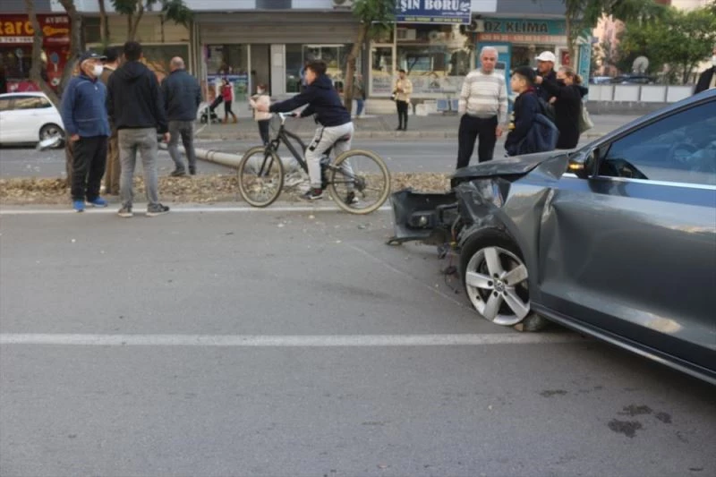ADANA - Adana'nın merkez Çukurova ilçesinde aydınlatma direğine çarpan otomobilin sürücüsü yaralandı.