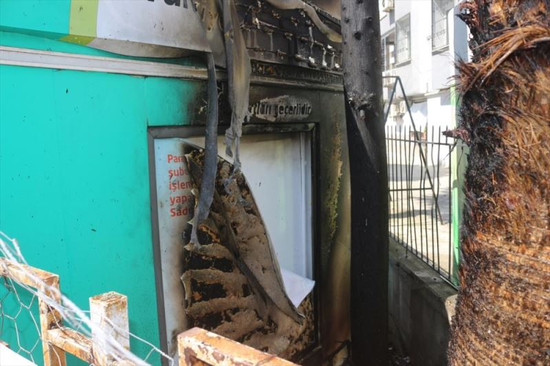 Yangin nedeniyle bankamatikte maddi hasar olustu.