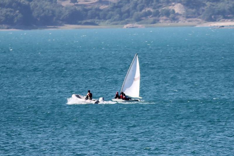 Adana Yelken Kulübü görevlileri, alabora olan tekneden suya düsen 3 kisiyi baraj gölünden çikardi.