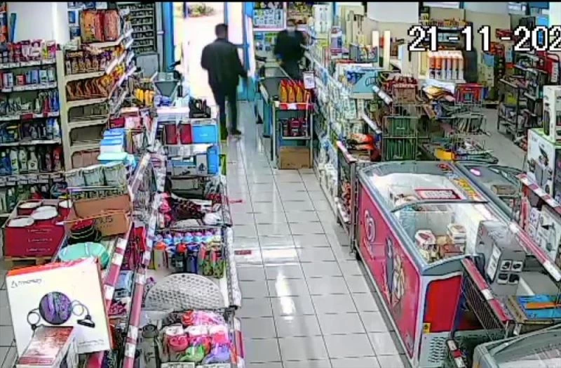 Marketin güvenlik kamerasina yansiyan görüntülerde, zanli, paralari vermesi için kadin görevliyi biçakla tehdit ediyor. Bu sirada, kadin görevlinin panikledigi görülüyor. Olayi fark eden diger görevli paspasla zanliya vurmaya çalisiyor. Ayni görevli daha sonra eline geçirdigi tursu kavanozunu zanliya firlatiyor. Basina isabet eden kavanozla yaralanan süpheli kaçiyor.