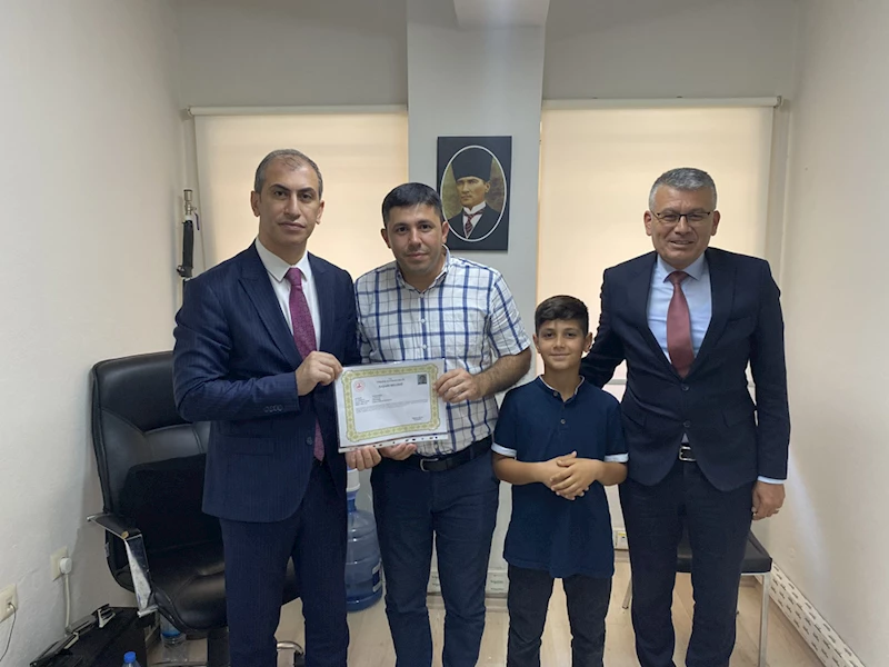 Kaymakam Aksu, Durmaz'a teşekkür ederek başarı belgesi verdi.