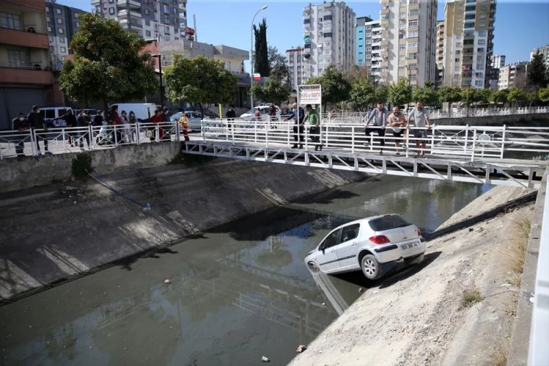 ADANA - Adana'da boş sulama kanalına devrilen otomobilin sürücüsü kazadan yara almadan kurtuldu.
